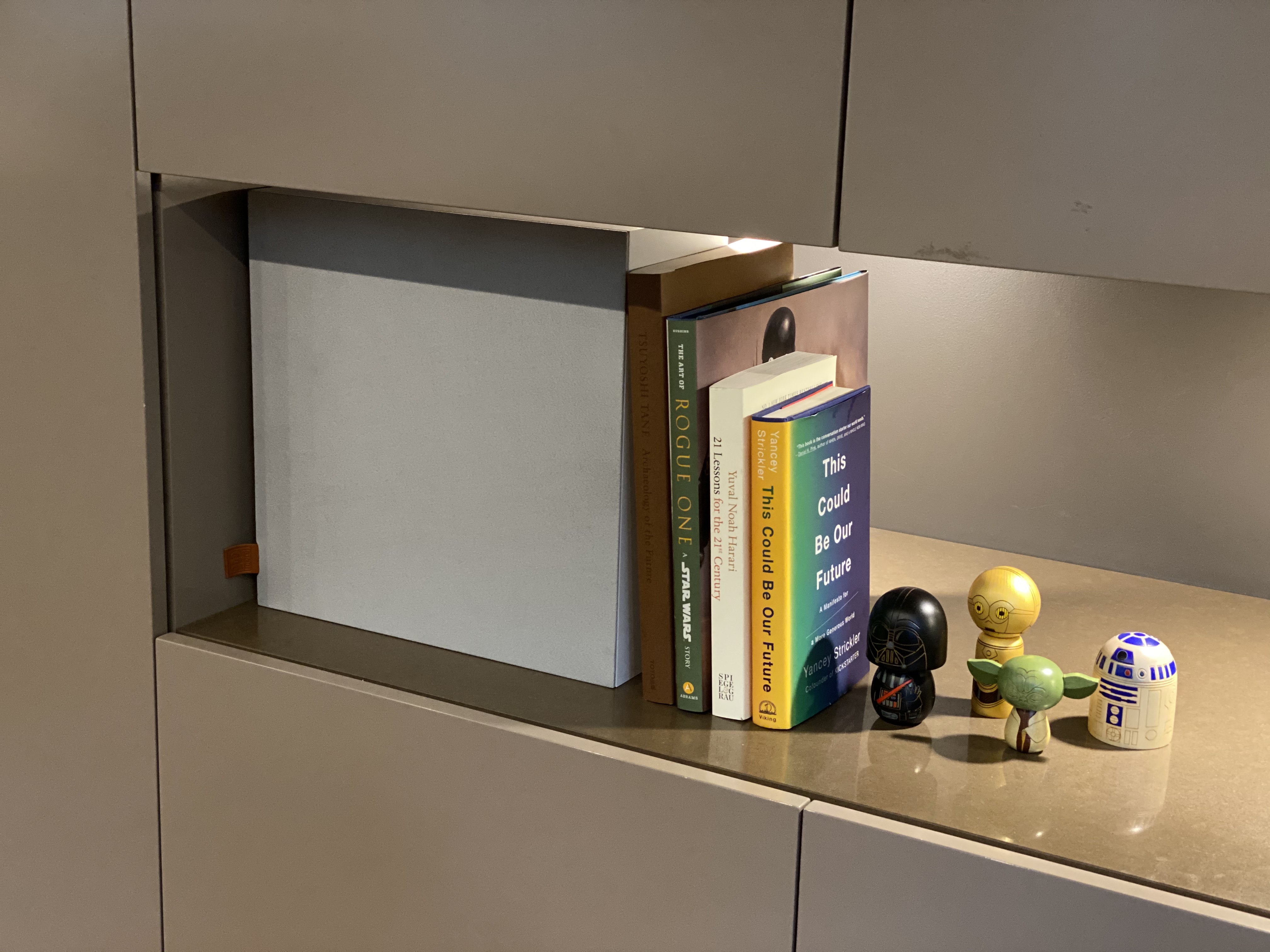 実際に、子供の本棚として使っているIKEAの棚にはめてみました。もはやスピーカーが入っていることにすら気づかなくなるほどのフィット感。TWSという仕組みでワイヤレスでステレオになるので、二つのスピーカーをオーディオ機器に直接つなげる必要はありません。電源コードさえつなげておけばOK!